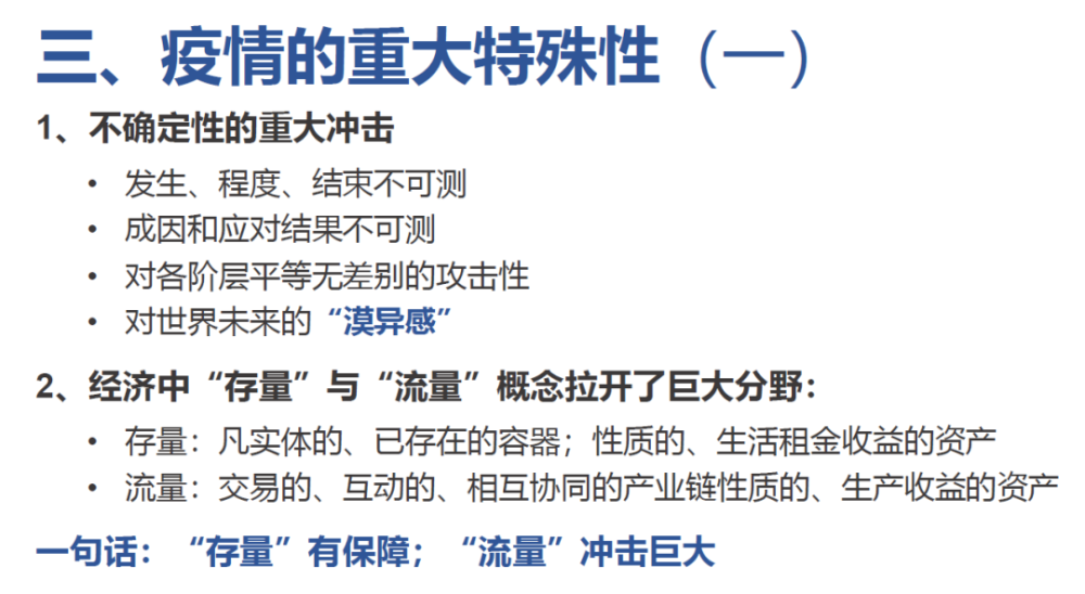 比如水灾发生是确定性的,发生了第一时间就确定了。但疫情到现在还不确定,这是重大的冲击。