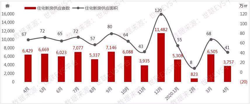 2019.4-2020.4月广州商品住宅新增供应套数和面积走势
