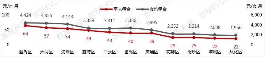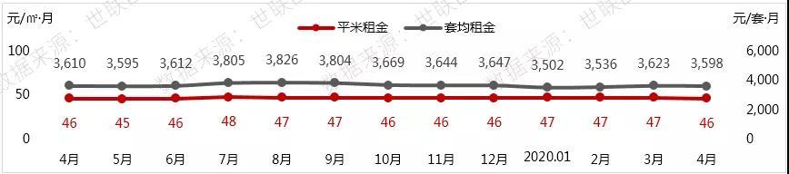 2019.4-2020.4月广州租赁市场平均租金及套均租金图
