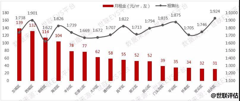 2020年4月北京住房各区租赁均价及租售比